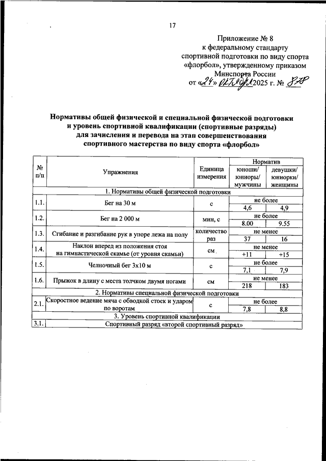 ПРИКАЗ Минспорта РФ от 24.10.2025 N 878