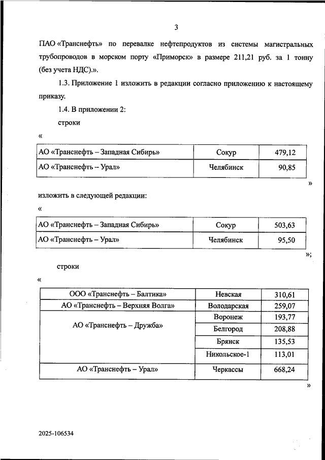 "О ВНЕСЕНИИ ИЗМЕНЕНИЙ В ПРИКАЗ ФСТ РОССИИ ОТ 7 ОКТЯБРЯ 2014 Г. N 223-Э/1 "ОБ УТВЕРЖДЕНИИ ТАРИФОВ НА УСЛУГИ ПАО "ТРАНСНЕФТЬ" И ЕГО АФФИЛИРОВАННЫХ ЛИЦ ПО ТРАНСПОРТИРОВКЕ НЕФТЕПРОДУКТОВ ПО МАГИСТРАЛЬНЫМ ТРУБОПРОВОДАМ"
