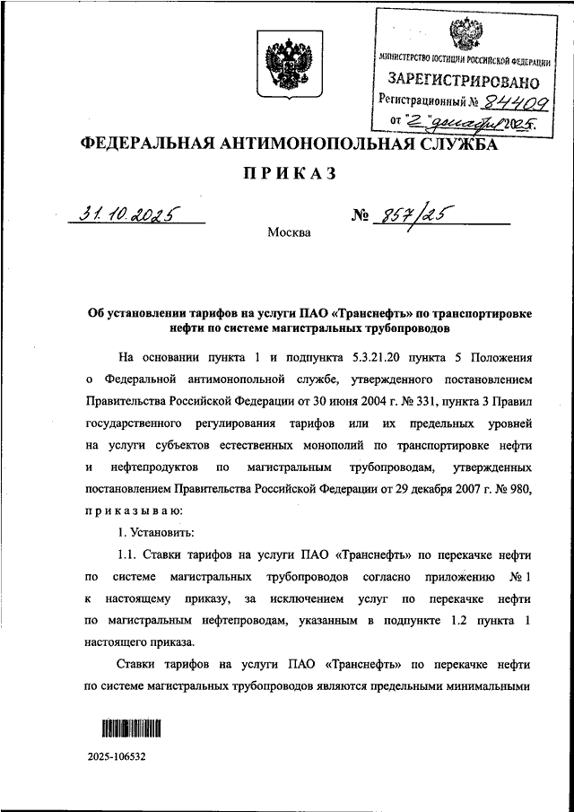 ПРИКАЗ Федеральной антимонопольной службы от 31.10.2025 N 857/25
