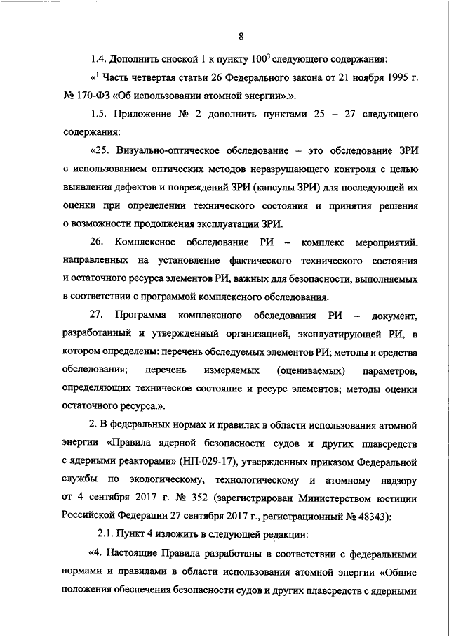 "О ВНЕСЕНИИ ИЗМЕНЕНИЙ В ФЕДЕРАЛЬНЫЕ НОРМЫ И ПРАВИЛА В ОБЛАСТИ ИСПОЛЬЗОВАНИЯ АТОМНОЙ ЭНЕРГИИ, УТВЕРЖДЕННЫЕ ПРИКАЗАМИ ФЕДЕРАЛЬНОЙ СЛУЖБЫ ПО ЭКОЛОГИЧЕСКОМУ, ТЕХНОЛОГИЧЕСКОМУ И АТОМНОМУ НАДЗОРУ ОТ 28 СЕНТЯБРЯ 2016 Г. N 405, ОТ 4 СЕНТЯБРЯ 2017 Г. N 352 И ОТ 27 ИЮНЯ 2018 Г. N 278"