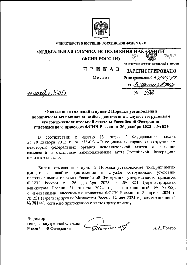 ПРИКАЗ ФСИН РФ от 11.11.2025 N 902