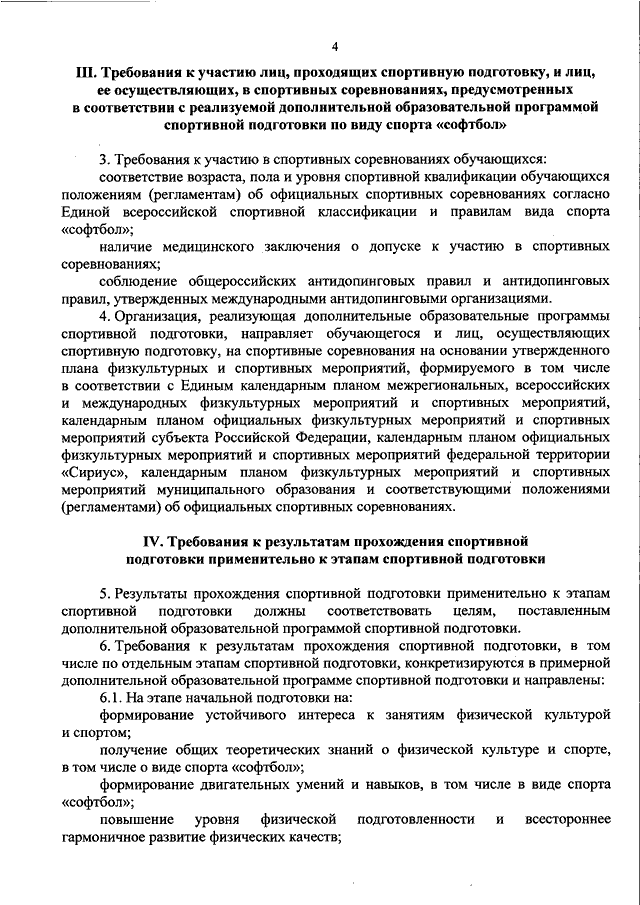 "ОБ УТВЕРЖДЕНИИ ФЕДЕРАЛЬНОГО СТАНДАРТА СПОРТИВНОЙ ПОДГОТОВКИ ПО ВИДУ СПОРТА "СОФТБОЛ"