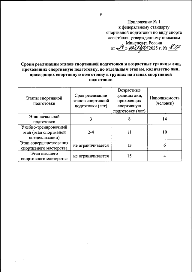ПРИКАЗ Минспорта РФ от 24.10.2025 N 877