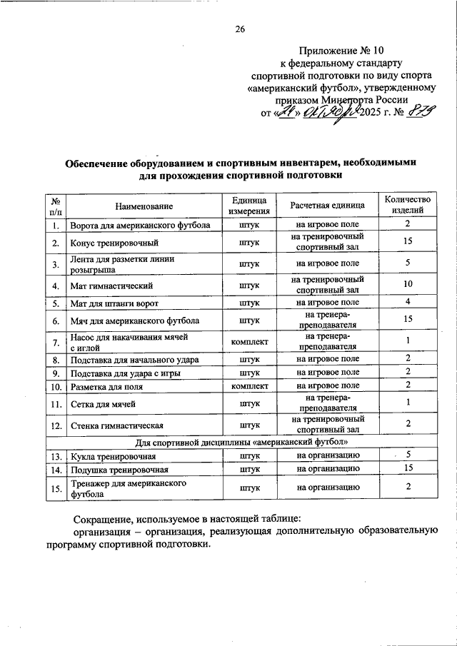 ПРИКАЗ Минспорта РФ от 24.10.2025 N 879