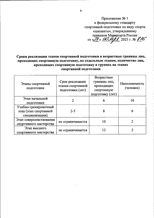 ПРИКАЗ Минспорта РФ от 24.10.2025 N 876