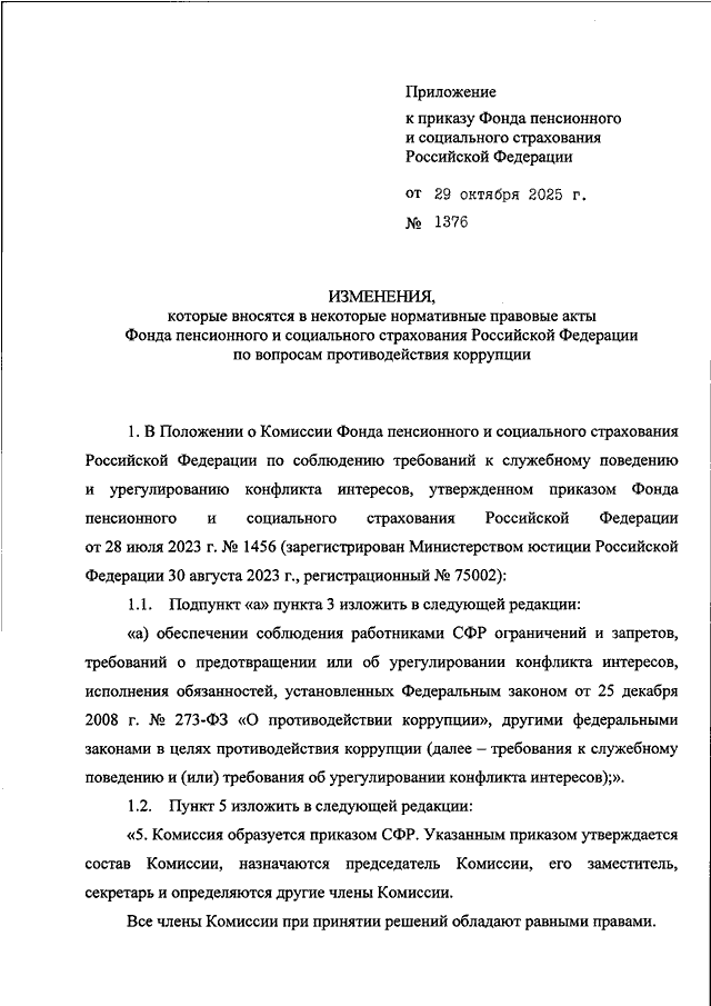 ПРИКАЗ СФР от 29.10.2025 N 1376