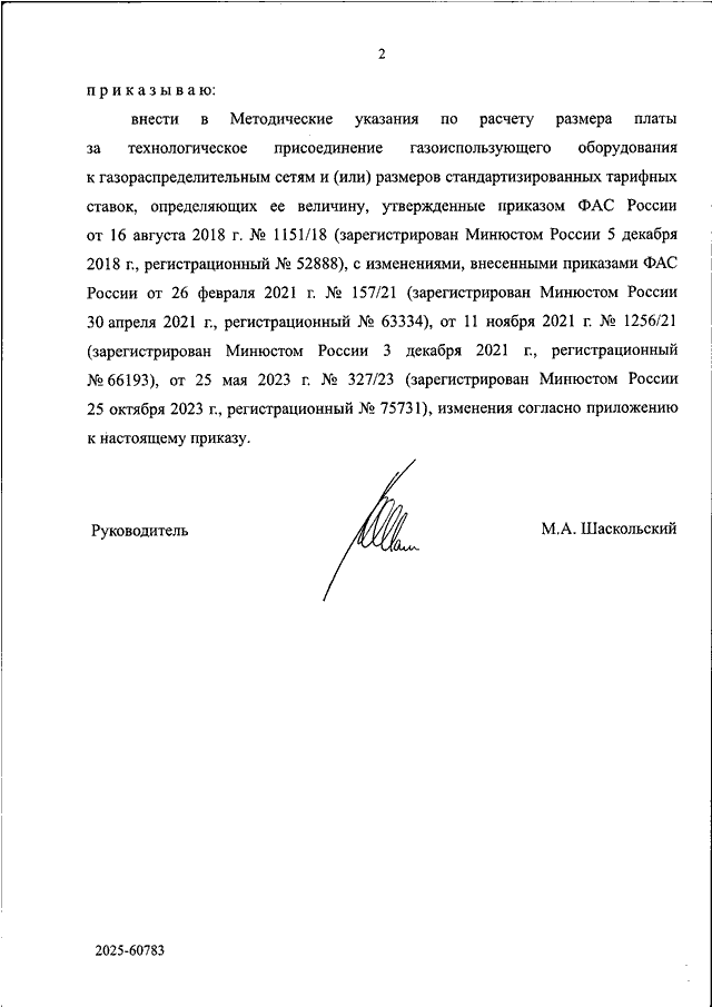 "О ВНЕСЕНИИ ИЗМЕНЕНИЙ В МЕТОДИЧЕСКИЕ УКАЗАНИЯ ПО РАСЧЕТУ РАЗМЕРА ПЛАТЫ ЗА ТЕХНОЛОГИЧЕСКОЕ ПРИСОЕДИНЕНИЕ ГАЗОИСПОЛЬЗУЮЩЕГО ОБОРУДОВАНИЯ К ГАЗОРАСПРЕДЕЛИТЕЛЬНЫМ СЕТЯМ И (ИЛИ) РАЗМЕРОВ СТАНДАРТИЗИРОВАННЫХ ТАРИФНЫХ СТАВОК, ОПРЕДЕЛЯЮЩИХ ЕЕ ВЕЛИЧИНУ, УТВЕРЖДЕННЫЕ ПРИКАЗОМ ФАС РОССИИ ОТ 16 АВГУСТА 2018 Г. N 1151/18"
