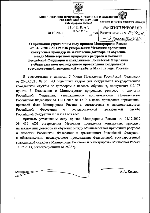 ПРИКАЗ Минприроды РФ от 30.10.2025 N 578