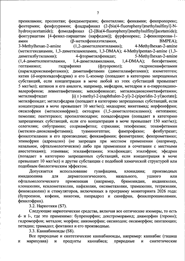 "ОБ УТВЕРЖДЕНИИ ПЕРЕЧНЕЙ СУБСТАНЦИЙ И (ИЛИ) МЕТОДОВ, ЗАПРЕЩЕННЫХ ДЛЯ ИСПОЛЬЗОВАНИЯ В СПОРТЕ"