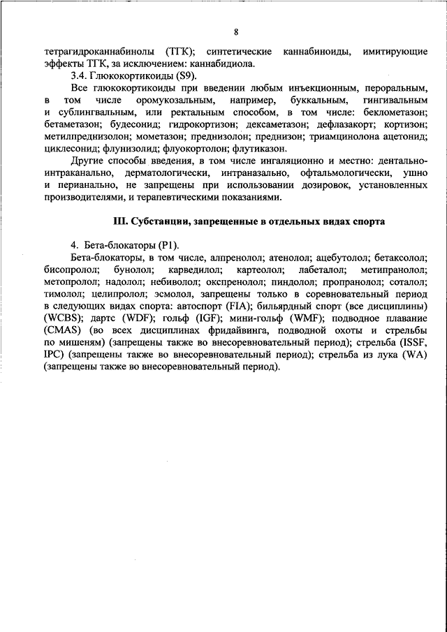 "ОБ УТВЕРЖДЕНИИ ПЕРЕЧНЕЙ СУБСТАНЦИЙ И (ИЛИ) МЕТОДОВ, ЗАПРЕЩЕННЫХ ДЛЯ ИСПОЛЬЗОВАНИЯ В СПОРТЕ"