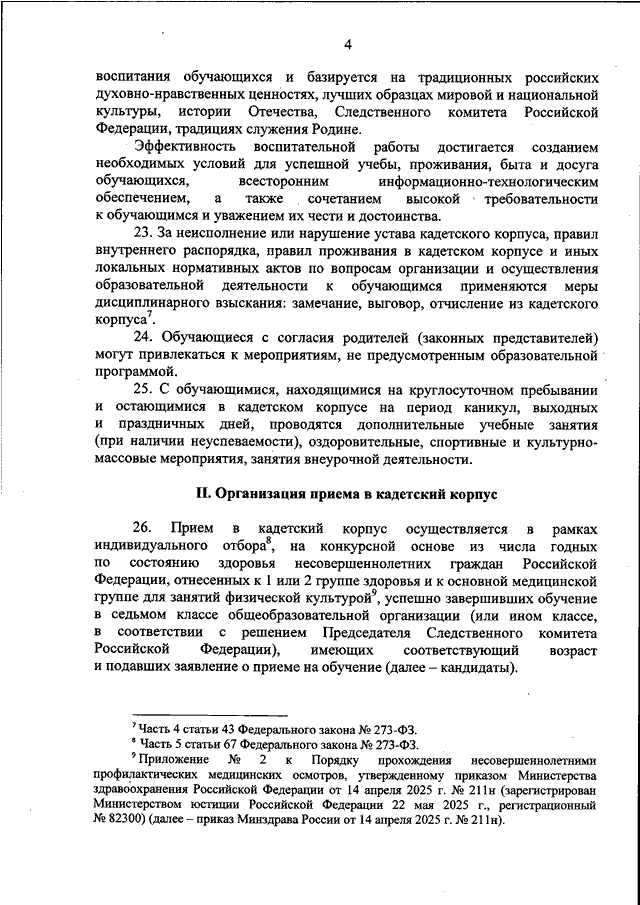 "ОБ УСТАНОВЛЕНИИ ПОРЯДКА ОРГАНИЗАЦИИ И ОСУЩЕСТВЛЕНИЯ ОБРАЗОВАТЕЛЬНОЙ ДЕЯТЕЛЬНОСТИ В ФЕДЕРАЛЬНЫХ ГОСУДАРСТВЕННЫХ ОБРАЗОВАТЕЛЬНЫХ ОРГАНИЗАЦИЯХ СО СПЕЦИАЛЬНЫМ НАИМЕНОВАНИЕМ "КАДЕТСКИЙ КОРПУС", НАХОДЯЩИХСЯ В ВЕДЕНИИ СЛЕДСТВЕННОГО КОМИТЕТА РОССИЙСКОЙ ФЕДЕРАЦИИ, И ПРИЕМА В УКАЗАННЫЕ ОБРАЗОВАТЕЛЬНЫЕ ОРГАНИЗАЦИИ"