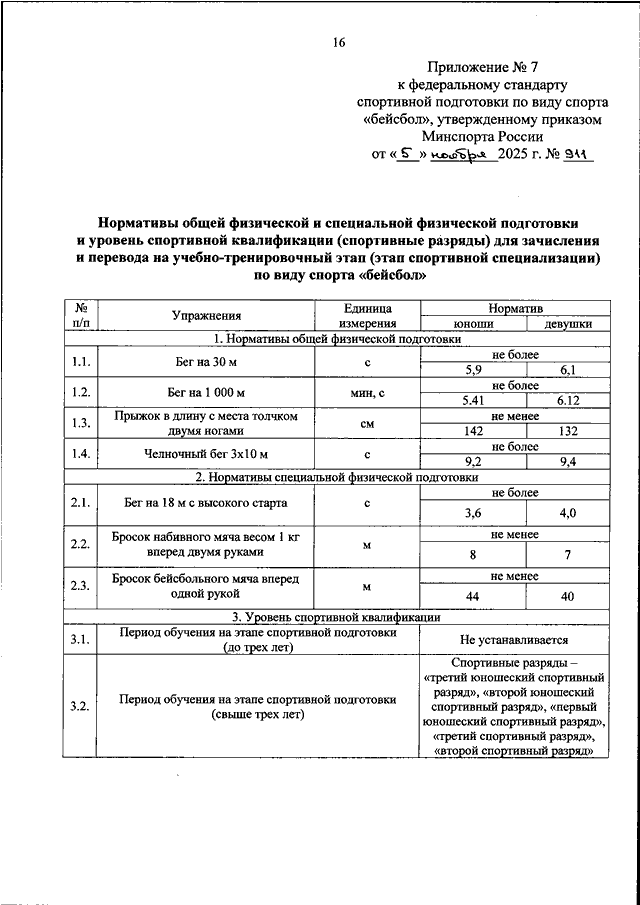 "ОБ УТВЕРЖДЕНИИ ФЕДЕРАЛЬНОГО СТАНДАРТА СПОРТИВНОЙ ПОДГОТОВКИ ПО ВИДУ СПОРТА "БЕЙСБОЛ"
