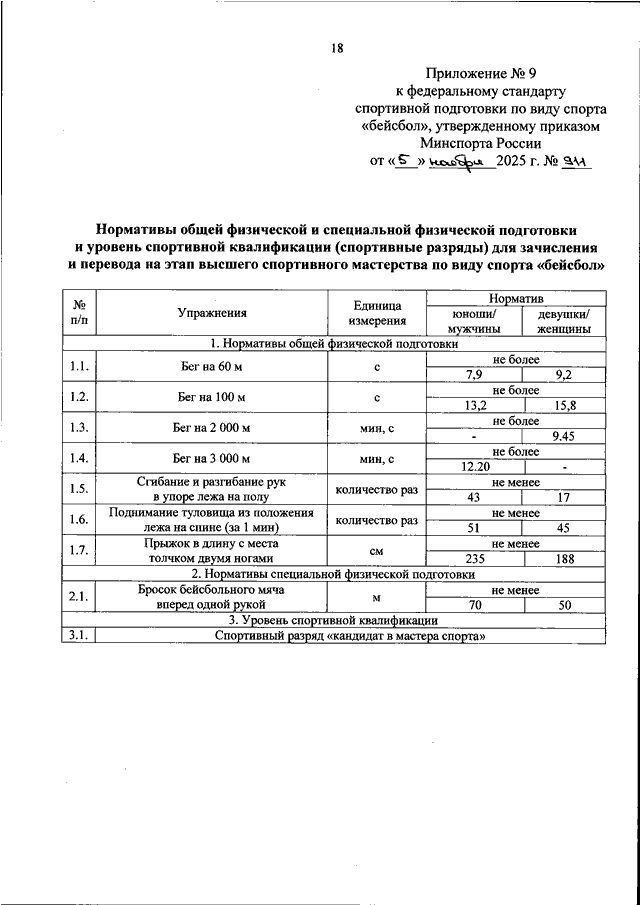 ПРИКАЗ Минспорта РФ от 05.11.2025 N 911