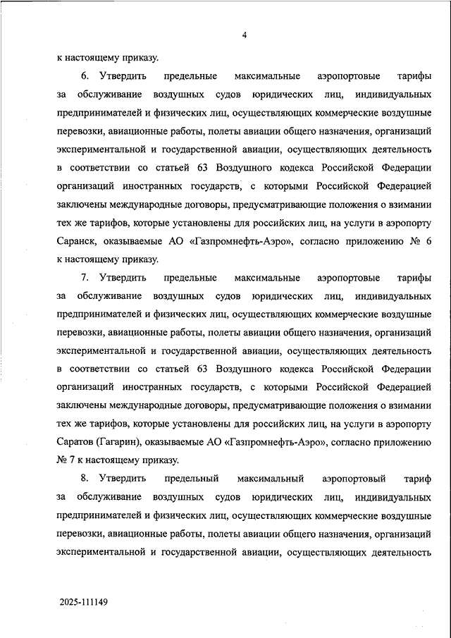 "ОБ УТВЕРЖДЕНИИ ПРЕДЕЛЬНЫХ МАКСИМАЛЬНЫХ АЭРОПОРТОВЫХ ТАРИФОВ ЗА ОБСЛУЖИВАНИЕ ВОЗДУШНЫХ СУДОВ ЮРИДИЧЕСКИХ ЛИЦ, ИНДИВИДУАЛЬНЫХ ПРЕДПРИНИМАТЕЛЕЙ И ФИЗИЧЕСКИХ ЛИЦ, ОСУЩЕСТВЛЯЮЩИХ КОММЕРЧЕСКИЕ ВОЗДУШНЫЕ ПЕРЕВОЗКИ, АВИАЦИОННЫЕ РАБОТЫ, ПОЛЕТЫ АВИАЦИИ ОБЩЕГО НАЗНАЧЕНИЯ, ОРГАНИЗАЦИЙ ЭКСПЕРИМЕНТАЛЬНОЙ И ГОСУДАРСТВЕННОЙ АВИАЦИИ, ОСУЩЕСТВЛЯЮЩИХ ДЕЯТЕЛЬНОСТЬ В СООТВЕТСТВИИ СО СТАТЬЕЙ 63 ВОЗДУШНОГО КОДЕКСА РОССИЙСКОЙ ФЕДЕРАЦИИ ОРГАНИЗАЦИЙ ИНОСТРАННЫХ ГОСУДАРСТВ, С КОТОРЫМИ РОССИЙСКОЙ ФЕДЕРАЦИЕЙ ЗАКЛЮЧЕНЫ МЕЖДУНАРОДНЫЕ ДОГОВОРЫ, ПРЕДУСМАТРИВАЮЩИЕ ПОЛОЖЕНИЯ О ВЗИМАНИИ ТЕХ ЖЕ ТАРИФОВ, КОТОРЫЕ УСТАНОВЛЕНЫ ДЛЯ РОССИЙСКИХ ЛИЦ, НА УСЛУГИ В АЭРОПОРТАХ БРЯНСК, КУРСК (ВОСТОЧНЫЙ), ОРСК, ОСТАФЬЕВО, ПСКОВ, САРАНСК, САРАТОВ (ГАГАРИН), ТОБОЛЬСК (РЕМЕЗОВ), УЛЬЯНОВСК (БАРАТАЕВКА), УЛЬЯНОВСК (ВОСТОЧНЫЙ), ЧИТА (КАДАЛА), ОКАЗЫВАЕМЫЕ АО "ГАЗПРОМНЕФТЬ-АЭРО"