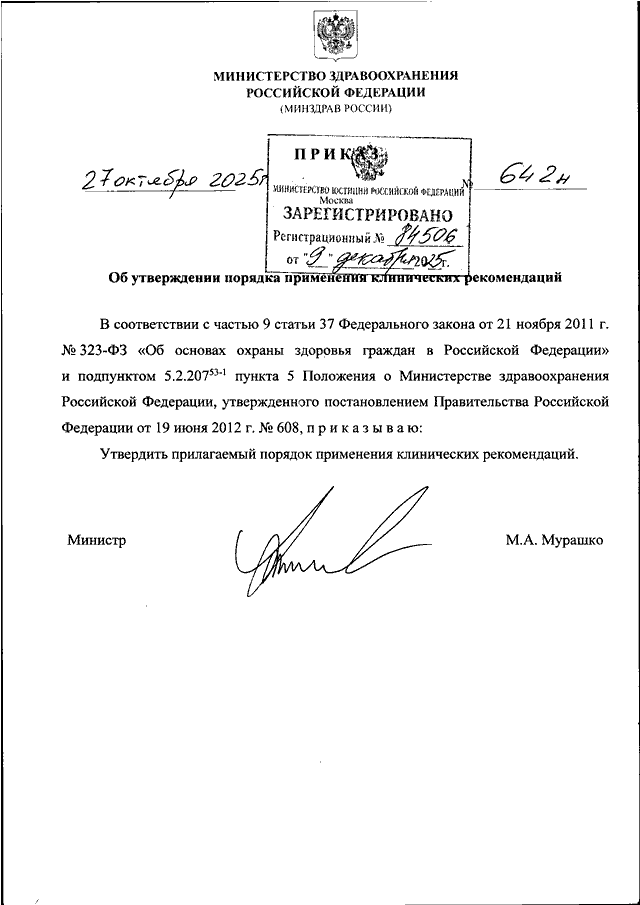 ПРИКАЗ Минздрава РФ от 27.10.2025 N 642н