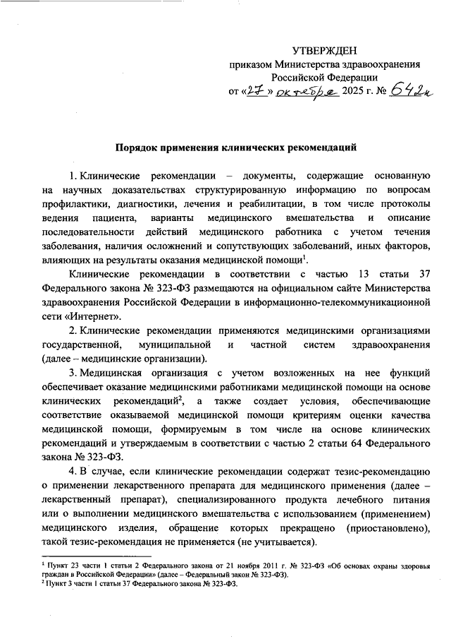 ПРИКАЗ Минздрава РФ от 27.10.2025 N 642н