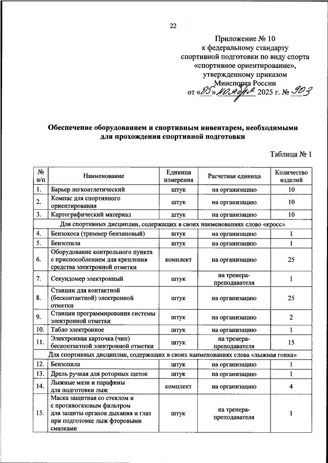 ПРИКАЗ Минспорта РФ от 05.11.2025 N 903