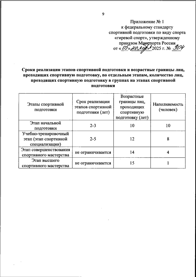 ПРИКАЗ Минспорта РФ от 05.11.2025 N 904
