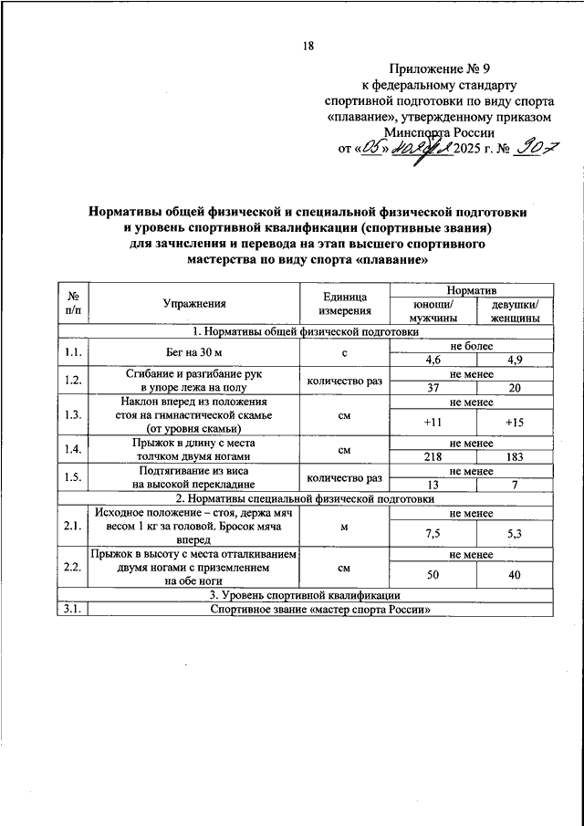 ПРИКАЗ Минспорта РФ от 05.11.2025 N 907