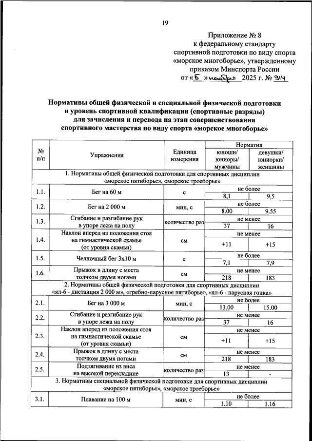 ПРИКАЗ Минспорта РФ от 05.11.2025 N 914