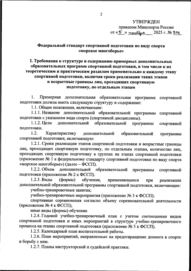 ПРИКАЗ Минспорта РФ от 05.11.2025 N 914