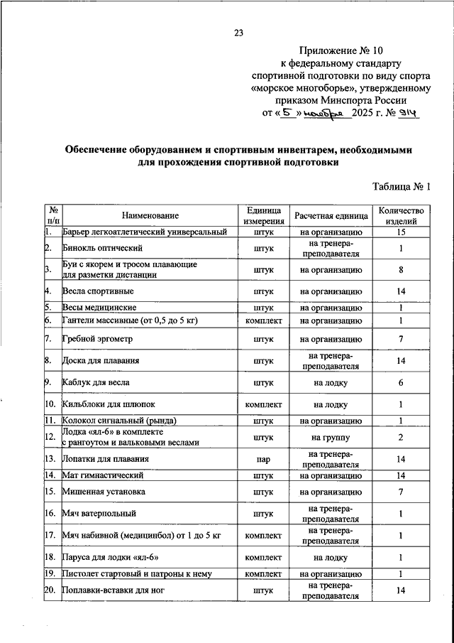 ПРИКАЗ Минспорта РФ от 05.11.2025 N 914