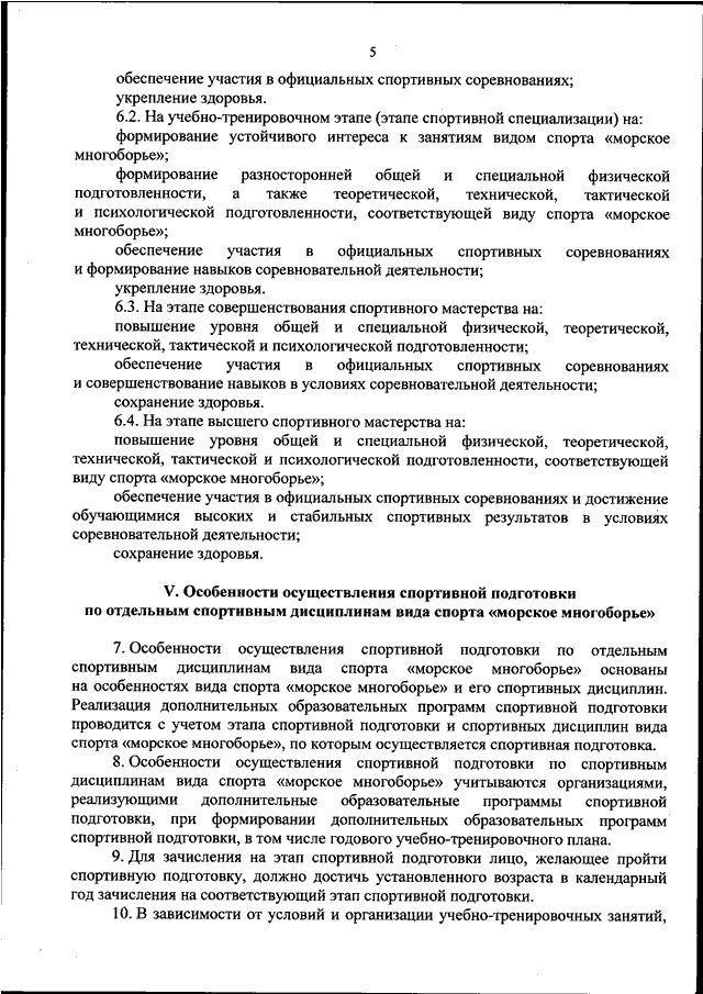 "ОБ УТВЕРЖДЕНИИ ФЕДЕРАЛЬНОГО СТАНДАРТА СПОРТИВНОЙ ПОДГОТОВКИ ПО ВИДУ СПОРТА "МОРСКОЕ МНОГОБОРЬЕ"