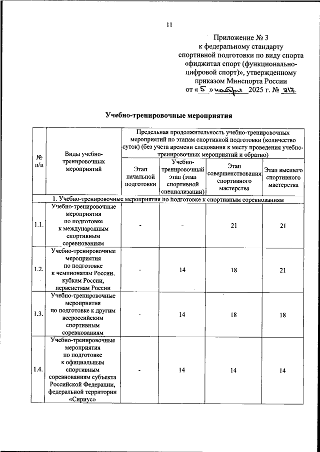 ПРИКАЗ Минспорта РФ от 05.11.2025 N 917