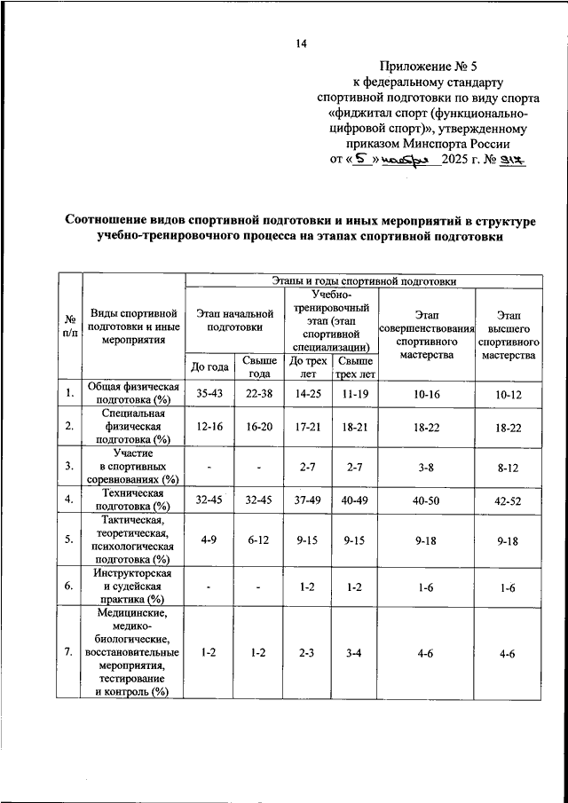 "ОБ УТВЕРЖДЕНИИ ФЕДЕРАЛЬНОГО СТАНДАРТА СПОРТИВНОЙ ПОДГОТОВКИ ПО ВИДУ СПОРТА "ФИДЖИТАЛ СПОРТ (ФУНКЦИОНАЛЬНО - ЦИФРОВОЙ СПОРТ)"