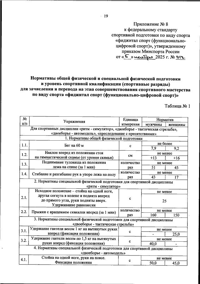 "ОБ УТВЕРЖДЕНИИ ФЕДЕРАЛЬНОГО СТАНДАРТА СПОРТИВНОЙ ПОДГОТОВКИ ПО ВИДУ СПОРТА "ФИДЖИТАЛ СПОРТ (ФУНКЦИОНАЛЬНО - ЦИФРОВОЙ СПОРТ)"