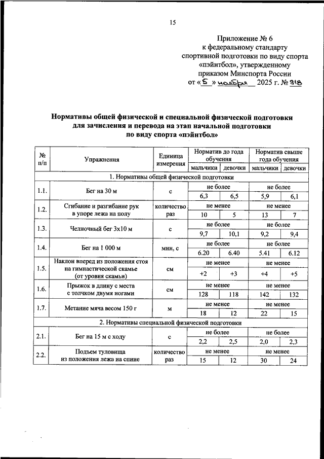 ПРИКАЗ Минспорта РФ от 05.11.2025 N 918