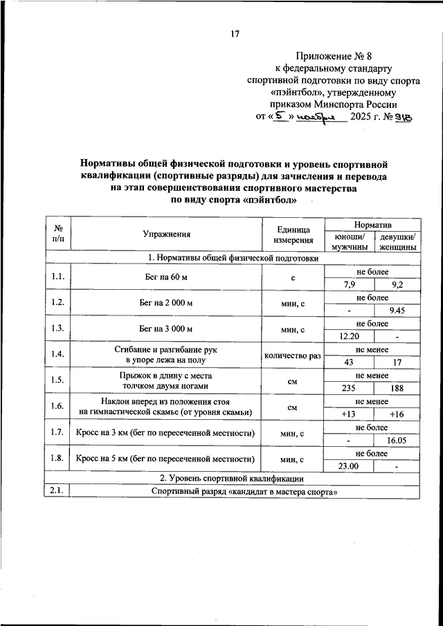 ПРИКАЗ Минспорта РФ от 05.11.2025 N 918