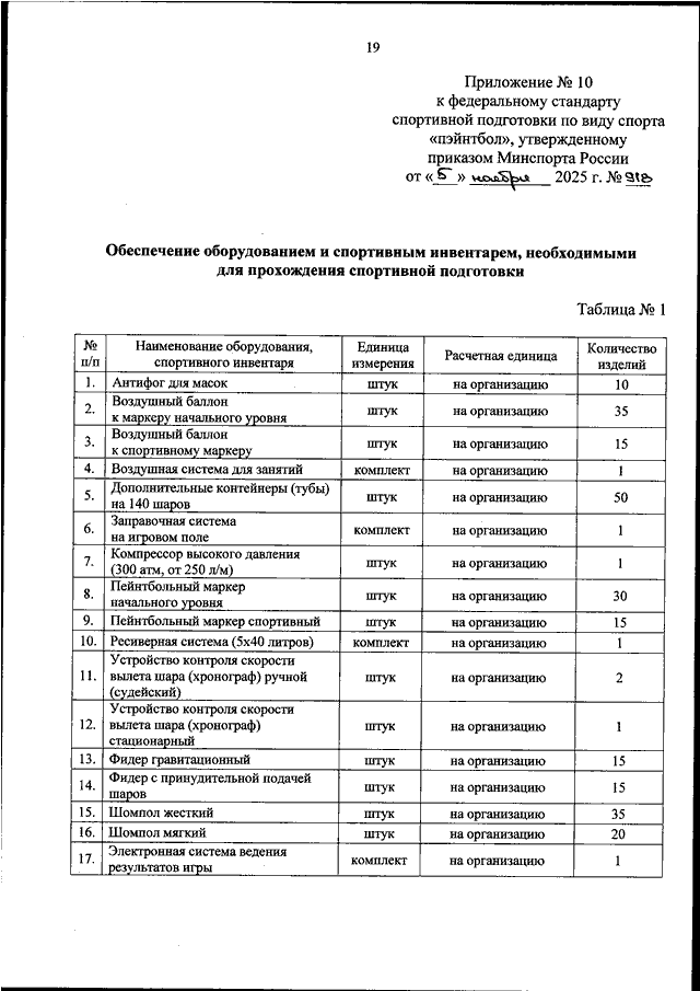 ПРИКАЗ Минспорта РФ от 05.11.2025 N 918