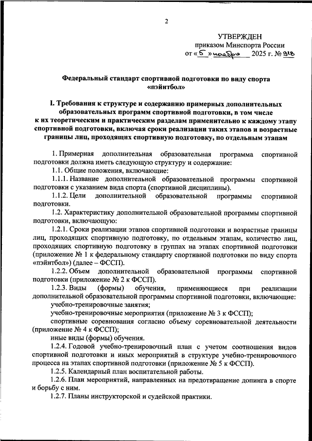 ПРИКАЗ Минспорта РФ от 05.11.2025 N 918