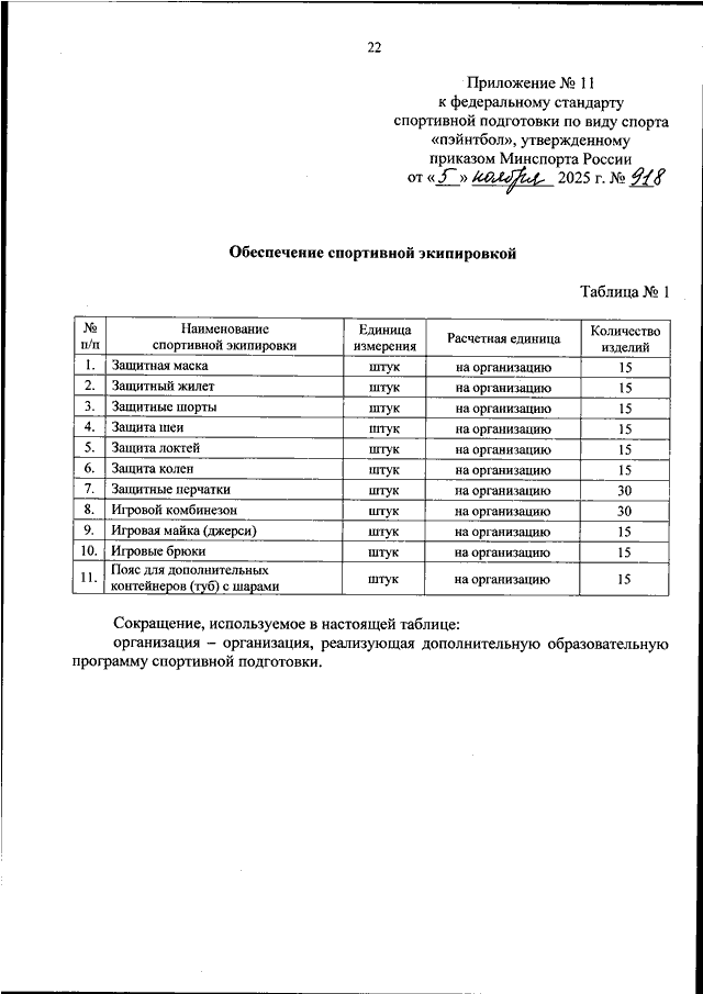 ПРИКАЗ Минспорта РФ от 05.11.2025 N 918