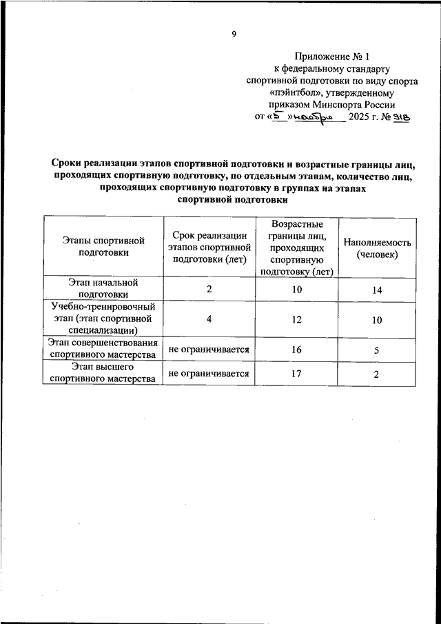 ПРИКАЗ Минспорта РФ от 05.11.2025 N 918