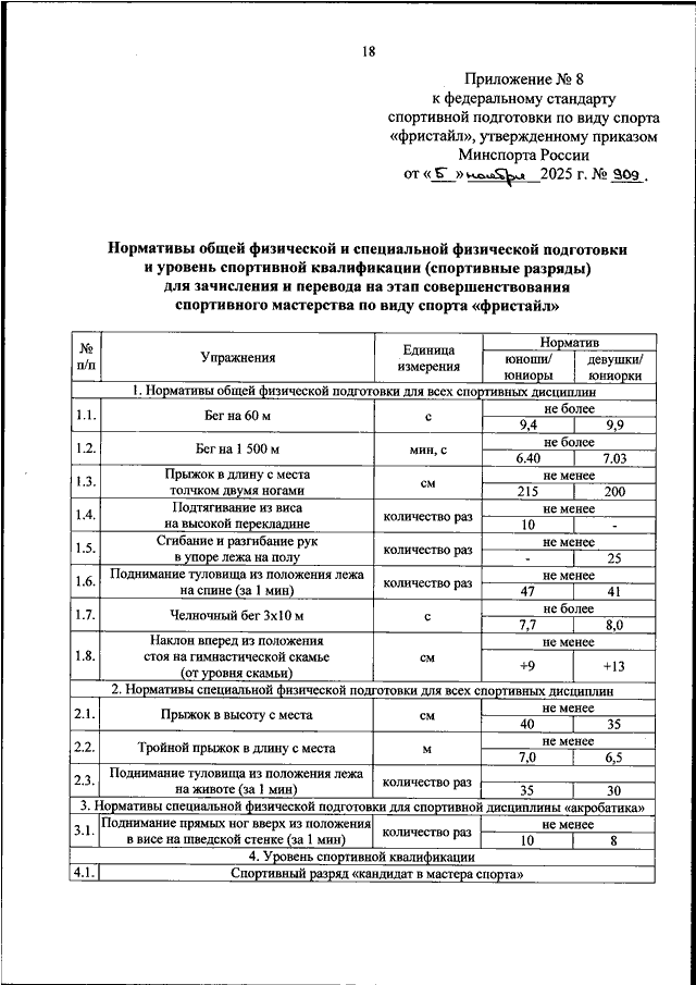 ПРИКАЗ Минспорта РФ от 05.11.2025 N 909