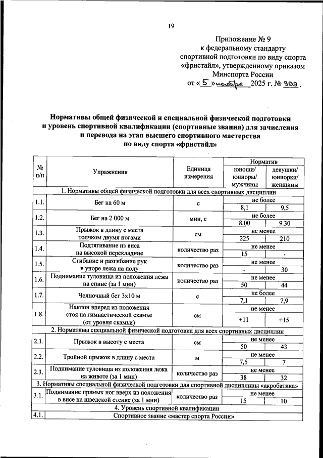 ПРИКАЗ Минспорта РФ от 05.11.2025 N 909