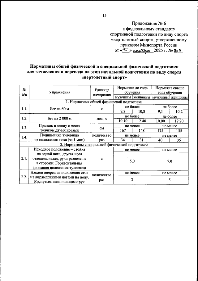 ПРИКАЗ Минспорта РФ от 05.11.2025 N 919