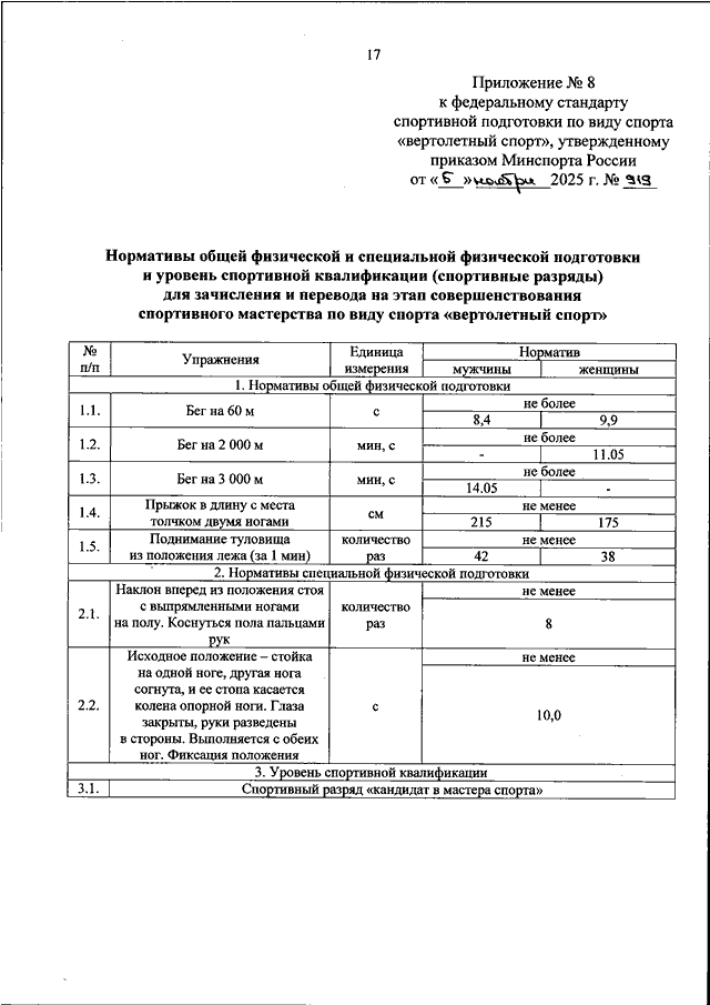 ПРИКАЗ Минспорта РФ от 05.11.2025 N 919