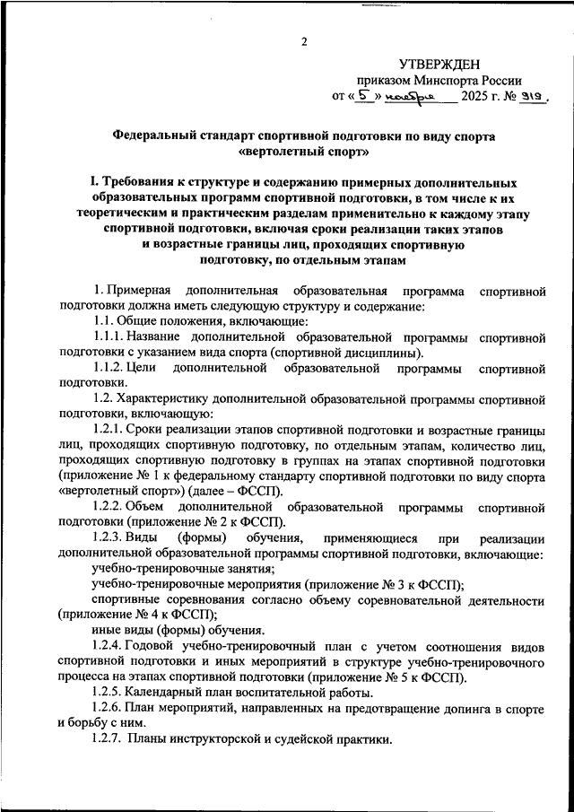 ПРИКАЗ Минспорта РФ от 05.11.2025 N 919