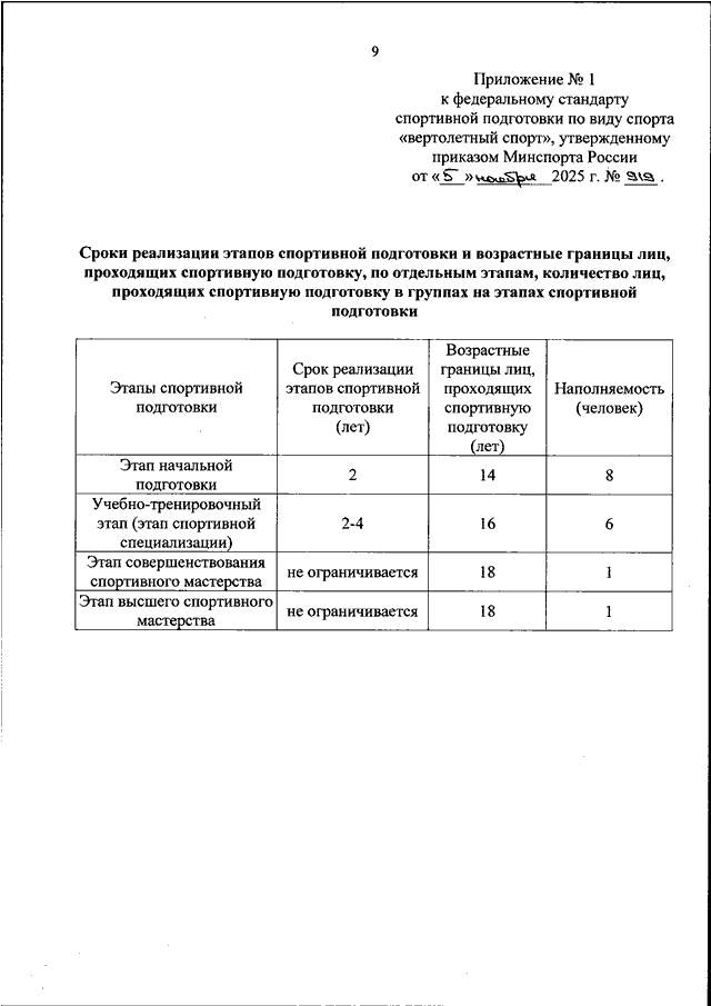 ПРИКАЗ Минспорта РФ от 05.11.2025 N 919