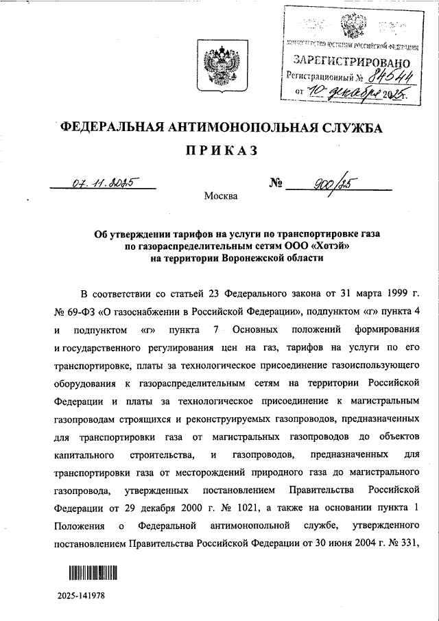 ПРИКАЗ Федеральной антимонопольной службы от 07.11.2025 N 900/25