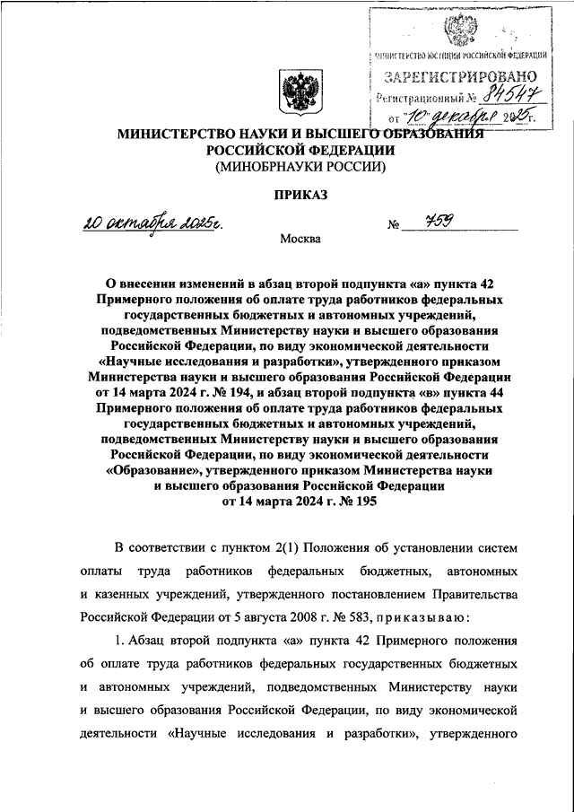 ПРИКАЗ Минобрнауки РФ от 20.10.2025 N 759