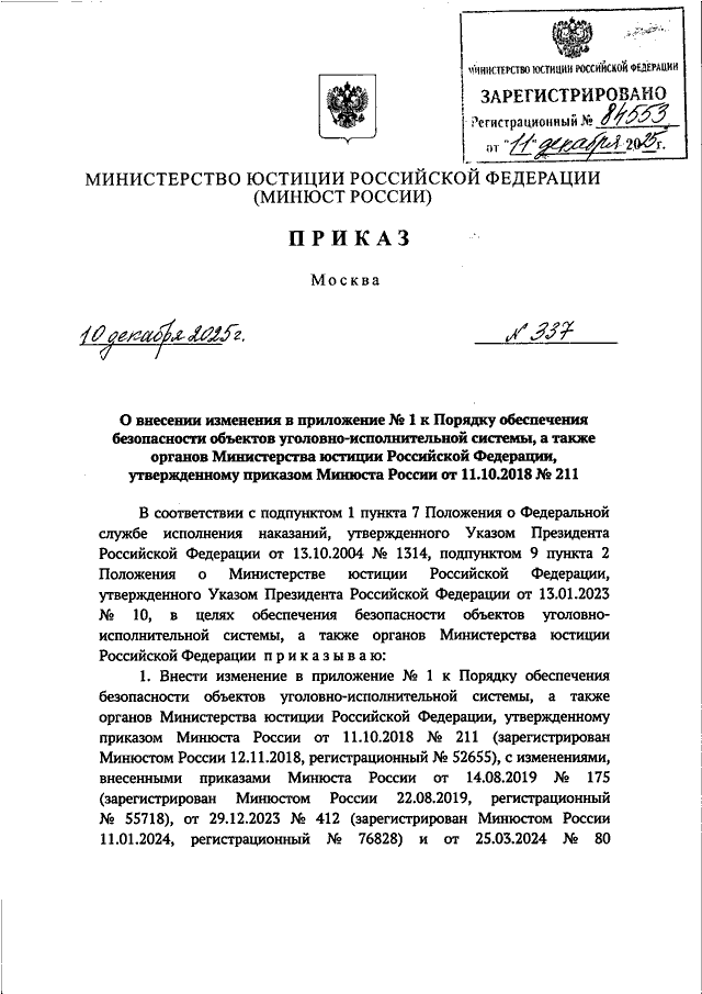 ПРИКАЗ Минюста РФ от 10.12.2025 N 337