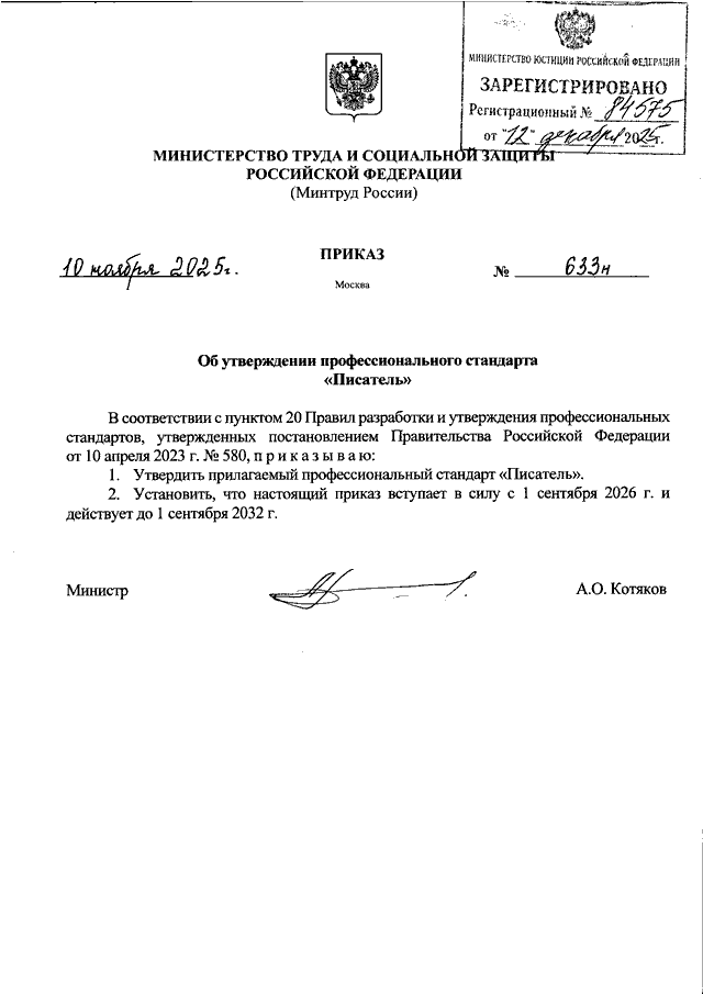 ПРИКАЗ Минтруда РФ от 10.11.2025 N 633н