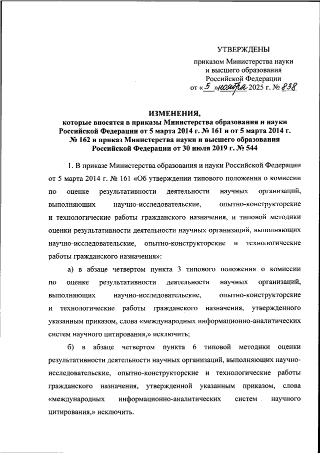 ПРИКАЗ Минобрнауки РФ от 05.11.2025 N 838