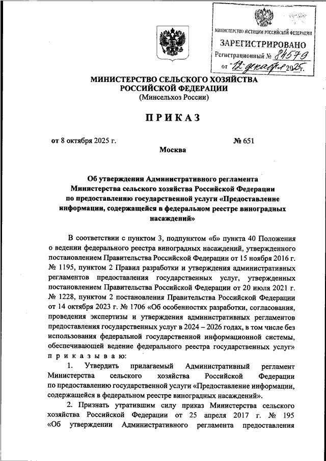 ПРИКАЗ Минсельхоза РФ от 08.10.2025 N 651