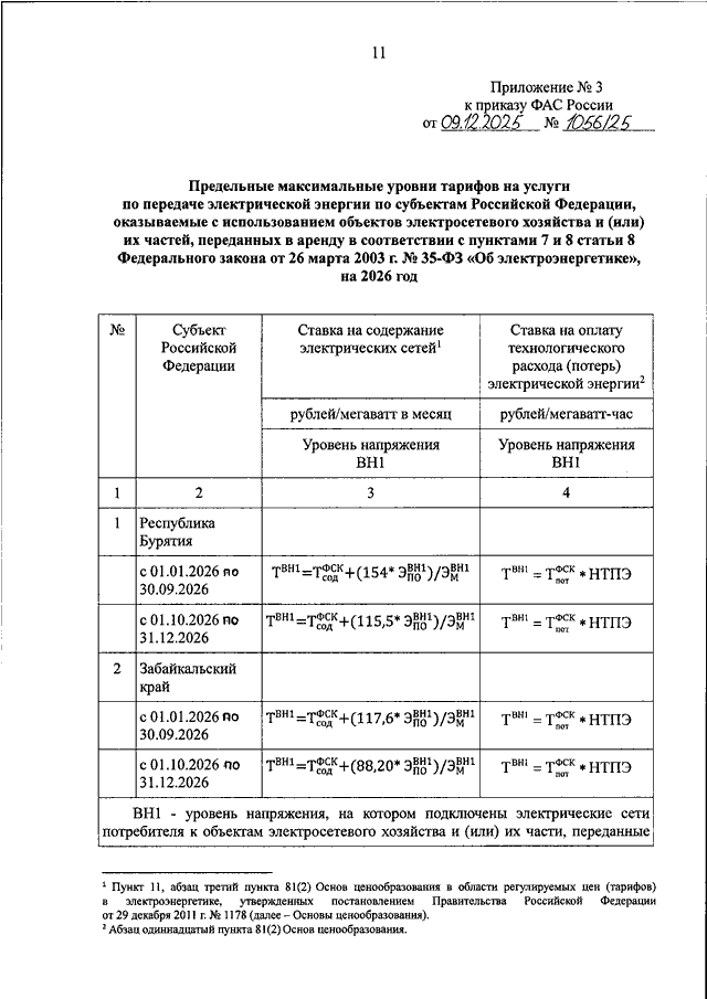 "ОБ УТВЕРЖДЕНИИ ПРЕДЕЛЬНЫХ МИНИМАЛЬНЫХ И МАКСИМАЛЬНЫХ УРОВНЕЙ ТАРИФОВ НА УСЛУГИ ПО ПЕРЕДАЧЕ ЭЛЕКТРИЧЕСКОЙ ЭНЕРГИИ ПО ЭЛЕКТРИЧЕСКИМ СЕТЯМ, ПРИНАДЛЕЖАЩИМ НА ПРАВЕ СОБСТВЕННОСТИ ИЛИ ИНОМ ЗАКОННОМ ОСНОВАНИИ ТЕРРИТОРИАЛЬНЫМ СЕТЕВЫМ ОРГАНИЗАЦИЯМ, ОКАЗЫВАЕМЫЕ ПОТРЕБИТЕЛЯМ, НЕ ОТНОСЯЩИМСЯ К НАСЕЛЕНИЮ И ПРИРАВНЕННЫМ К НЕМУ КАТЕГОРИЯМ ПОТРЕБИТЕЛЕЙ, ПО СУБЪЕКТАМ РОССИЙСКОЙ ФЕДЕРАЦИИ НА 2026 ГОД"