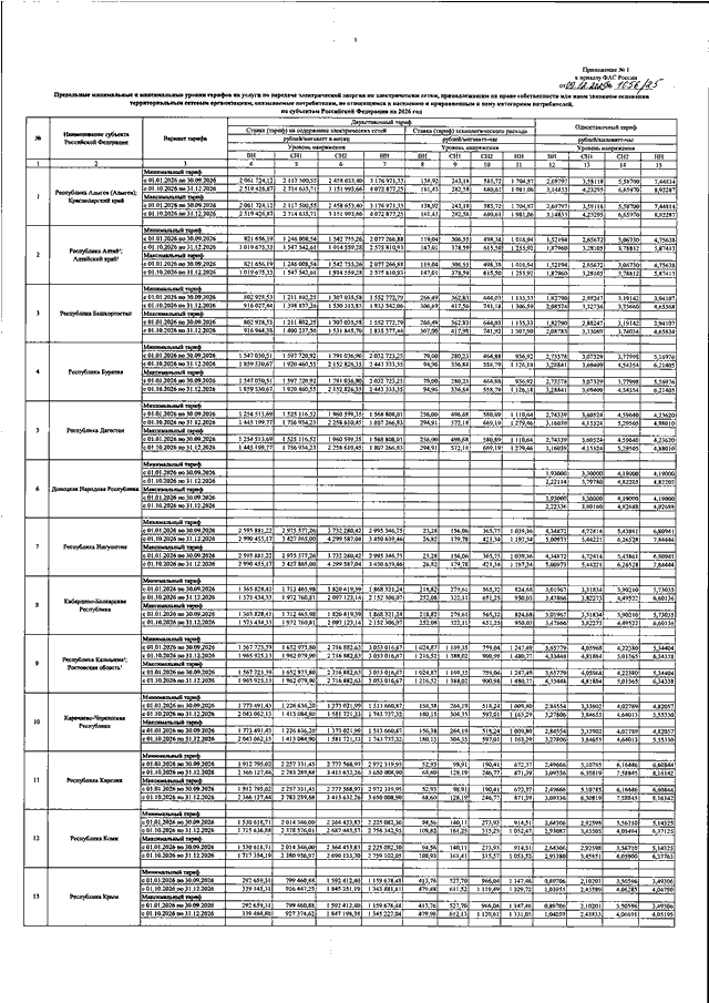 "ОБ УТВЕРЖДЕНИИ ПРЕДЕЛЬНЫХ МИНИМАЛЬНЫХ И МАКСИМАЛЬНЫХ УРОВНЕЙ ТАРИФОВ НА УСЛУГИ ПО ПЕРЕДАЧЕ ЭЛЕКТРИЧЕСКОЙ ЭНЕРГИИ ПО ЭЛЕКТРИЧЕСКИМ СЕТЯМ, ПРИНАДЛЕЖАЩИМ НА ПРАВЕ СОБСТВЕННОСТИ ИЛИ ИНОМ ЗАКОННОМ ОСНОВАНИИ ТЕРРИТОРИАЛЬНЫМ СЕТЕВЫМ ОРГАНИЗАЦИЯМ, ОКАЗЫВАЕМЫЕ ПОТРЕБИТЕЛЯМ, НЕ ОТНОСЯЩИМСЯ К НАСЕЛЕНИЮ И ПРИРАВНЕННЫМ К НЕМУ КАТЕГОРИЯМ ПОТРЕБИТЕЛЕЙ, ПО СУБЪЕКТАМ РОССИЙСКОЙ ФЕДЕРАЦИИ НА 2026 ГОД"